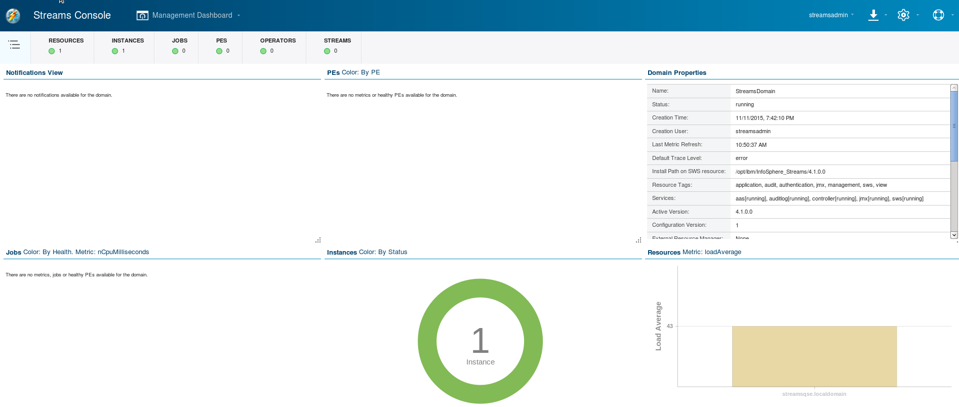 Once the Streams Console is open, you should be presented with a screen that looks like the following: